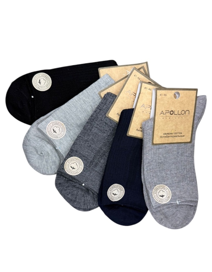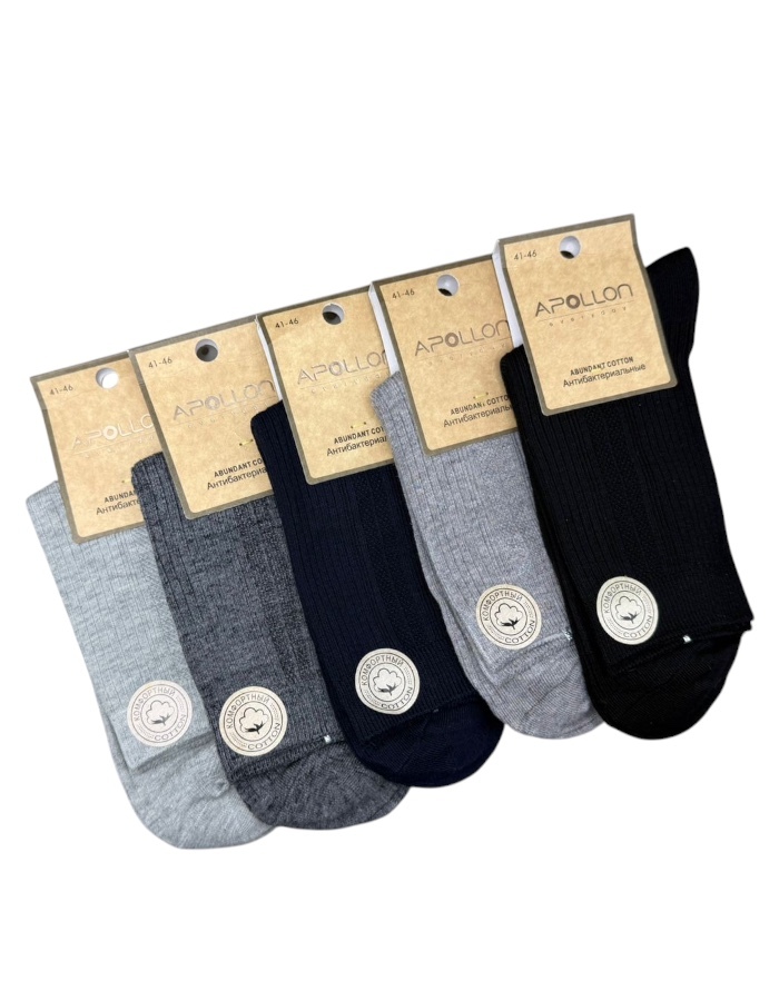 Набор мужских антибактериальных носков из хлопка в рубчик, представленных в черном, сером, графитовом и бежево-коричневом цветах, сочетает в себе стиль, комфорт и защиту. Эти носки привлекают покупателей классическим дизайном, удобной резинкой и антибактериальными свойствами.