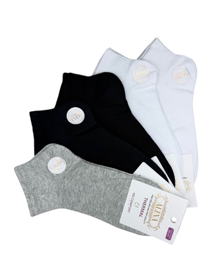 Набор женских укороченных хлопковых носков с высокой резинкой, представленных в черном, белом и сером цветах, – это идеальное сочетание стиля и комфорта для ваших покупательниц. Эти носки подойдут для повседневной носки и обеспечат надежную фиксацию на весь день.